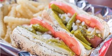 Mustard, Onion, Relish, Tomato, Pickle, Sport Peppers & Celery Salt